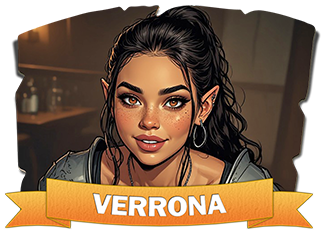 Appearance: Verrona is almost always in armor, and now usually her BW armor. When she is not, she dresses in the clothing BW gives her, black with some accents. Verrona is beautiful, has flowing brown hair and her most unique trait is her almost glow in the dark copper eyes. Rarely does she dress fancy but she keeps herself very clean and tidy.