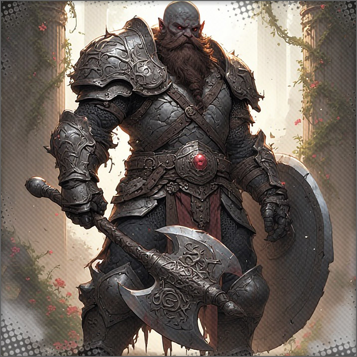 Two heavier armored Duergar (Known as Duergar Stone Guard) appear and attack. One goes after Sincere with a warhammer with spikes and he parries it with his big clumbsy great hammer. Meanwhile another tries to do some damage on Inasatra but she was having nothing of it as she not only parries it, but jumps out of the way.
