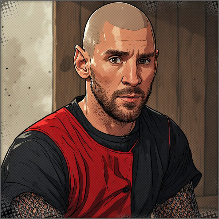 He was handicapped. He straps himself to a cart to get around. Since then he was healed by the Champion and can walk again. Marco is Wyzaquenne’s right hand man, very knowledgeable and a crude negotiator. He is considerate, casual, suspicious and many times Skillful.