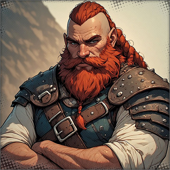 He is a Thoraxian Dwarf that worked for most of his early life in the Blue Steel Mines. He excelled quickly at everything and became a weapons master. He was officially “retired” from the army. After years of friendship, he was invited by Cassie & Xavier to be the Weapons Master in Camerondale. He gladly accepted and moved to the big city. Helkyr is obsessive, brash, hearty and sometimes gross.
